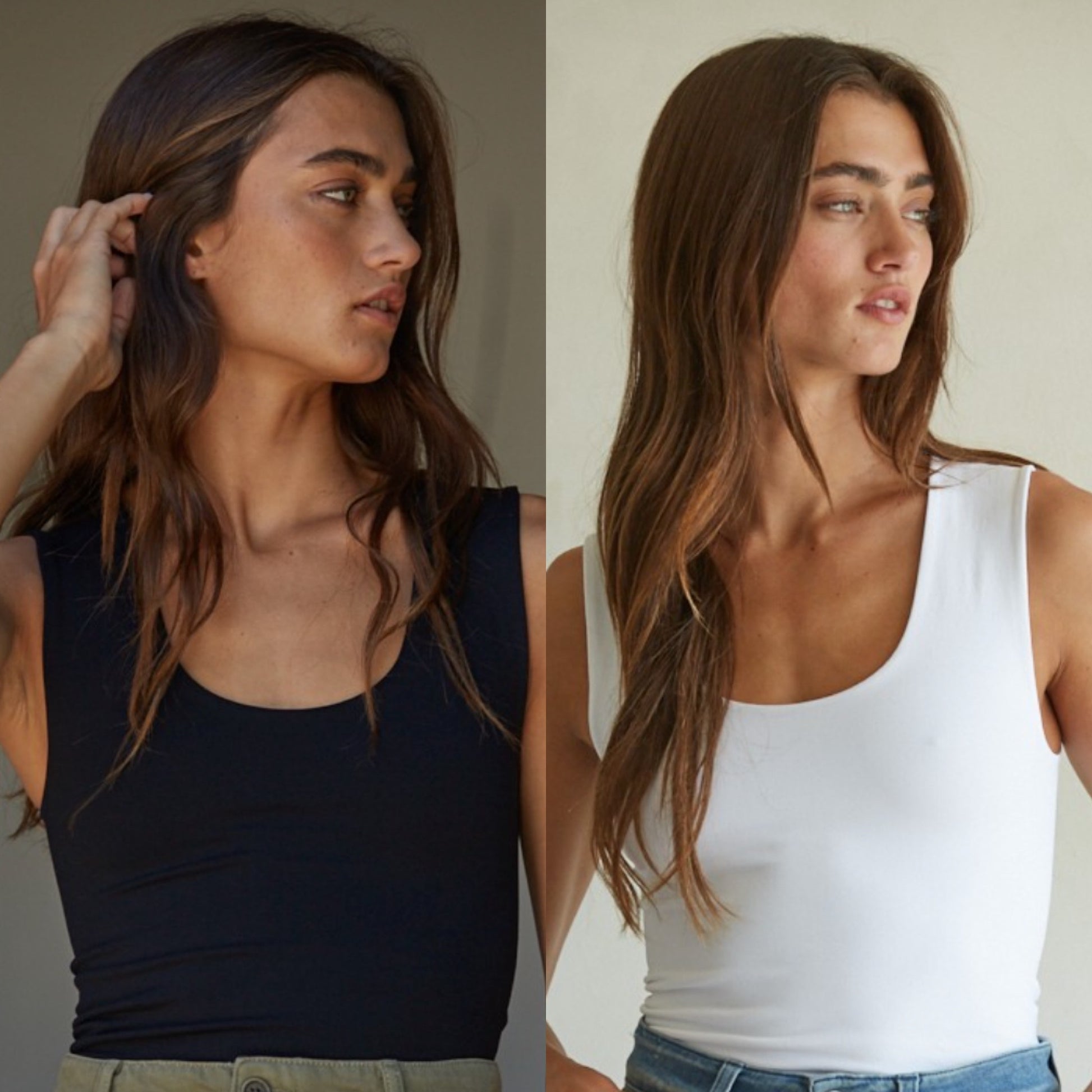 Double Layered Full Length Tank Soft double-layered knit, full length coverage, versatile base.